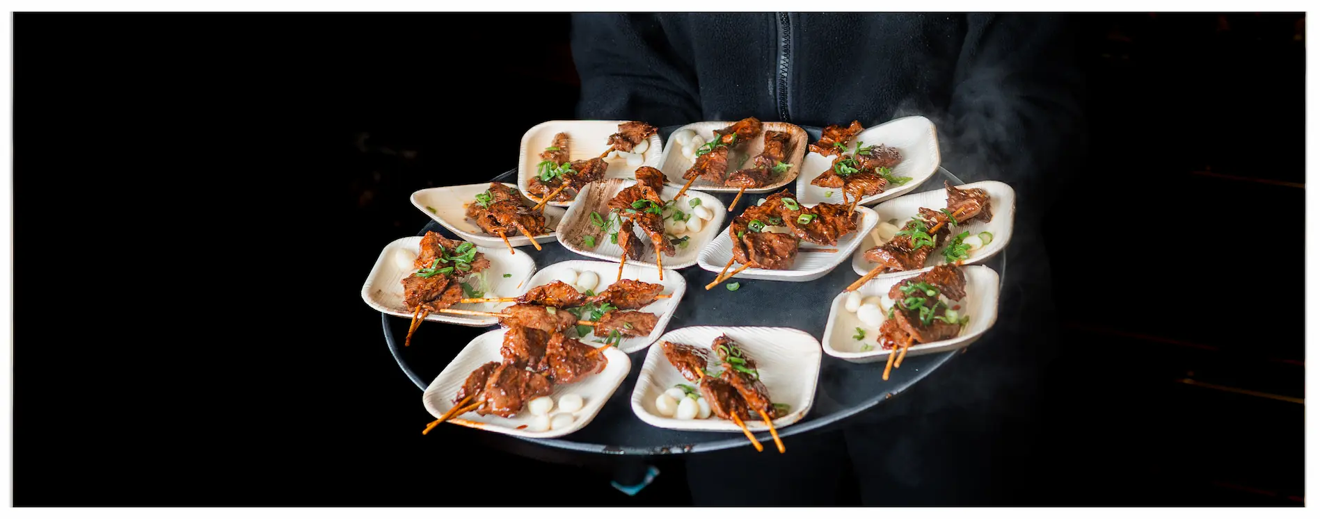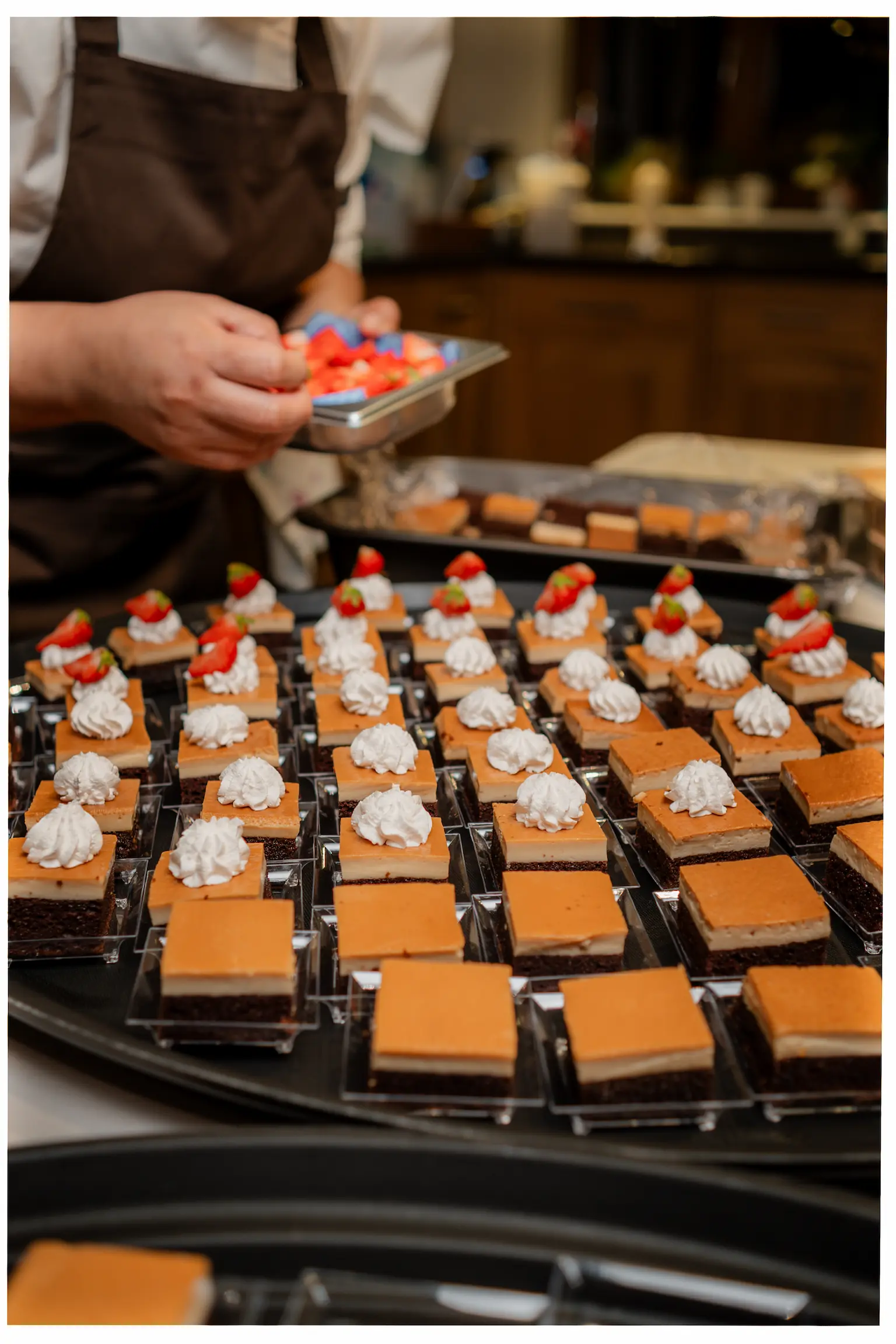 Perfect for intimate gatherings, lively parties, formal celebrations, or business meetings. With one hand free for a drink and the other savoring our creations, your guests can mingle and truly enjoy. Be the host with the most—without the stress.