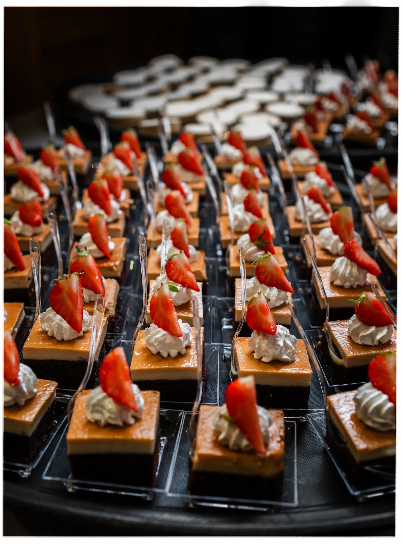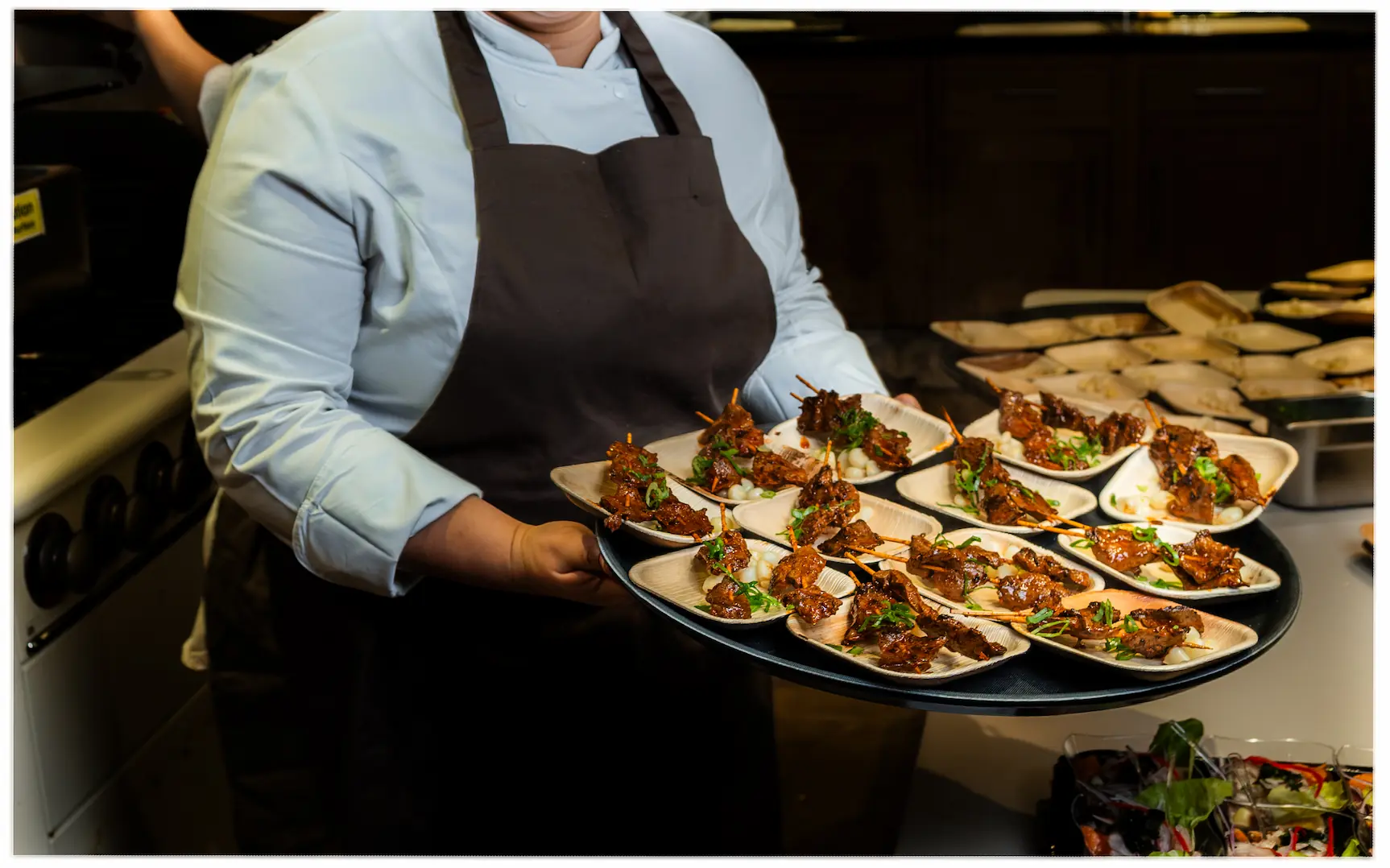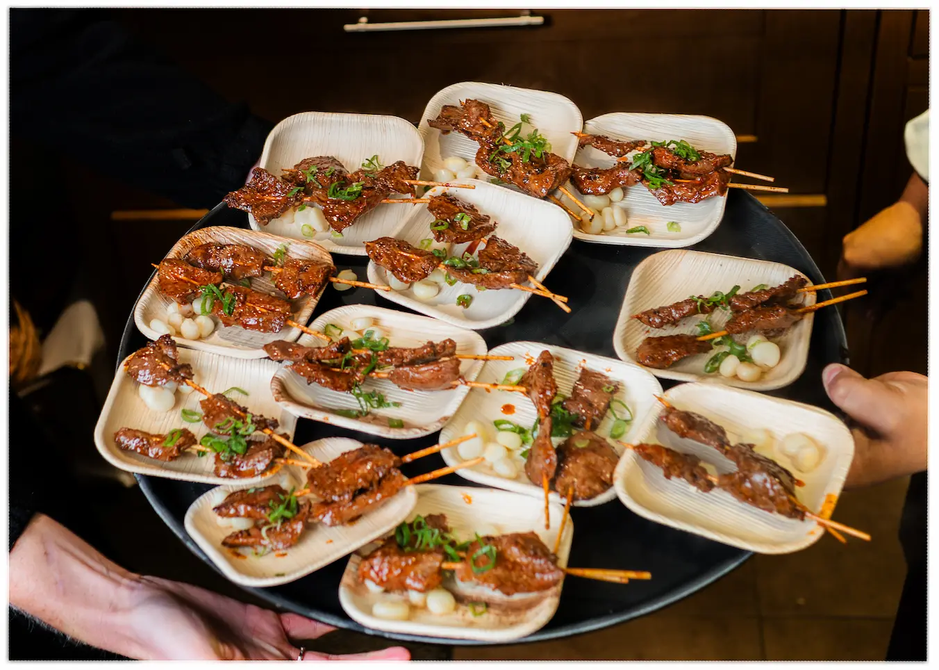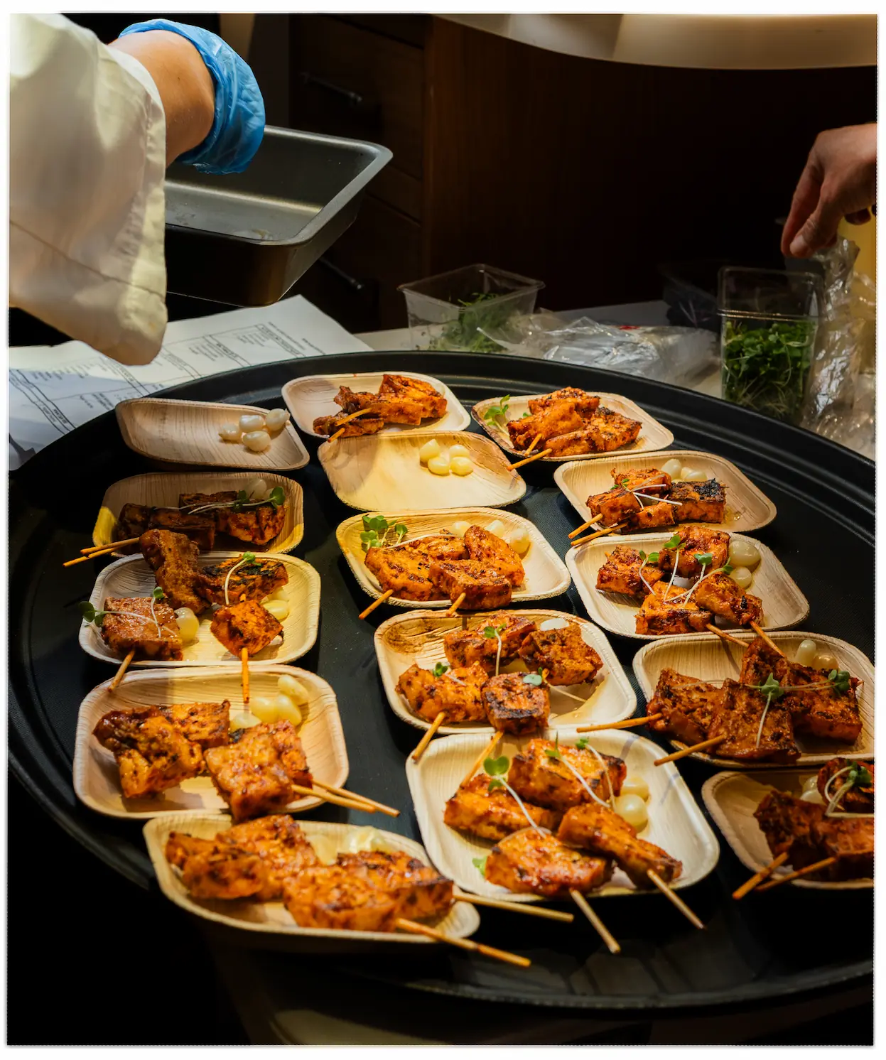 Perfect for intimate gatherings, lively parties, formal celebrations, or business meetings. With one hand free for a drink and the other savoring our creations, your guests can mingle and truly enjoy. Be the host with the most—without the stress.