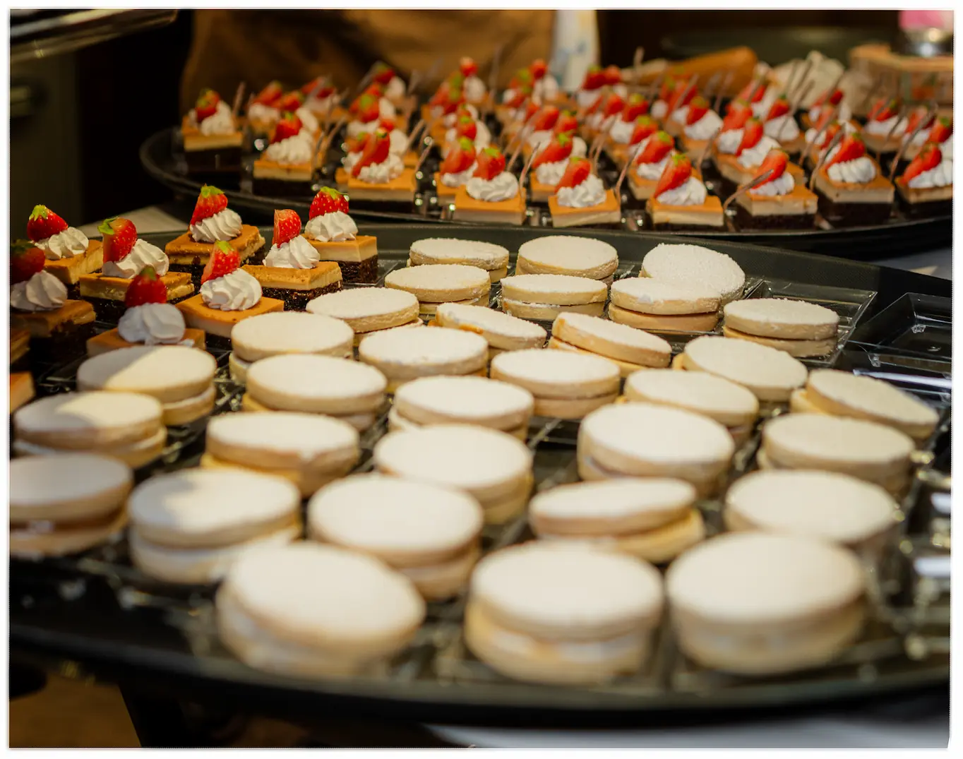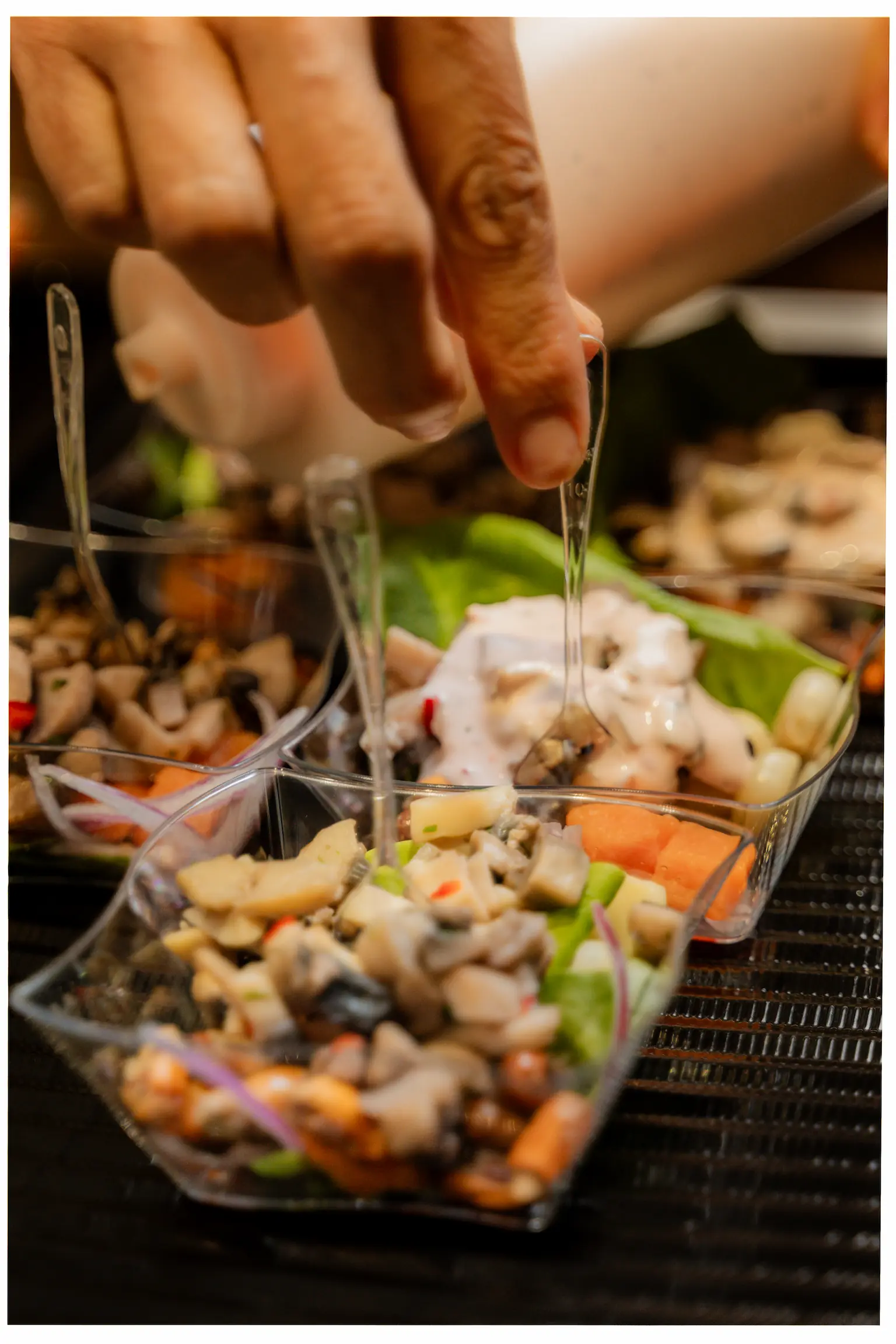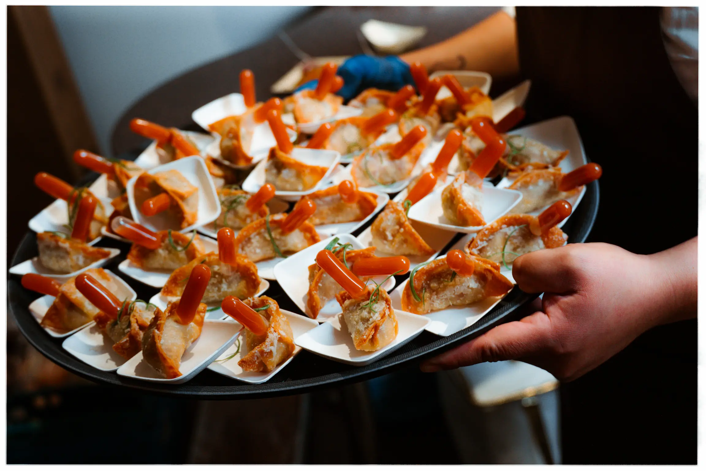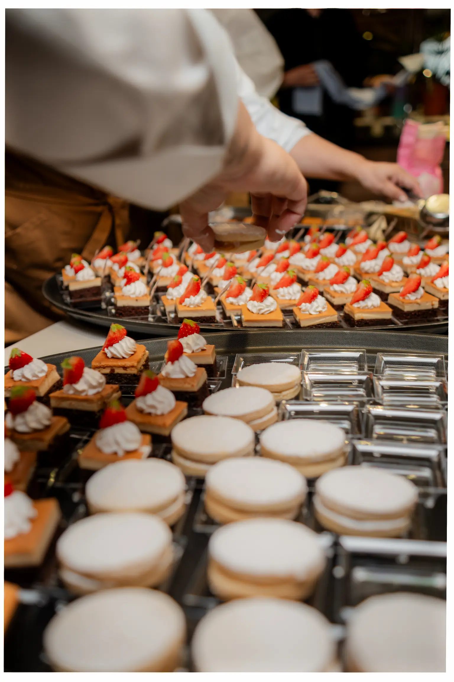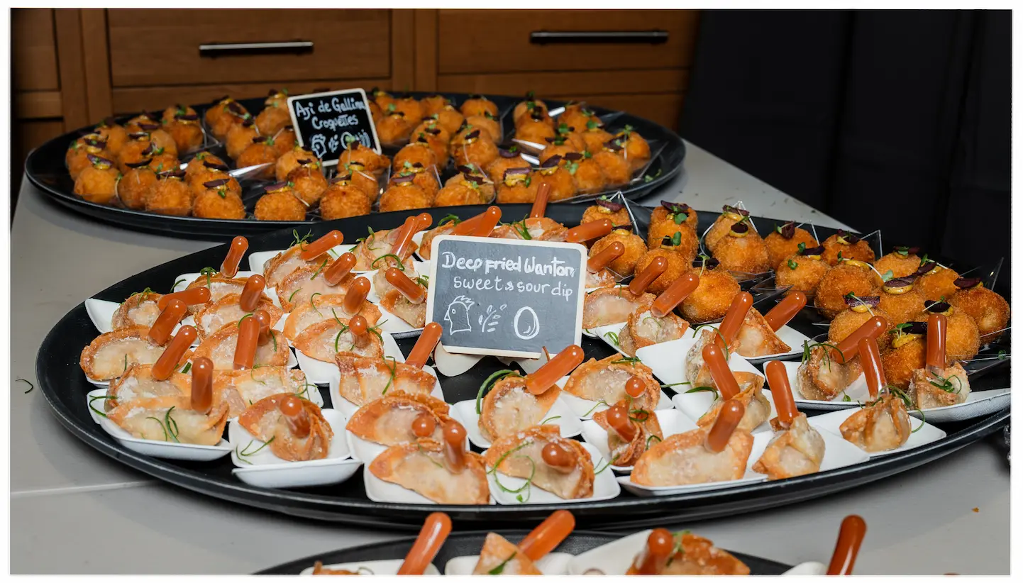 Perfect for intimate gatherings, lively parties, formal celebrations, or business meetings. With one hand free for a drink and the other savoring our creations, your guests can mingle and truly enjoy. Be the host with the most—without the stress.