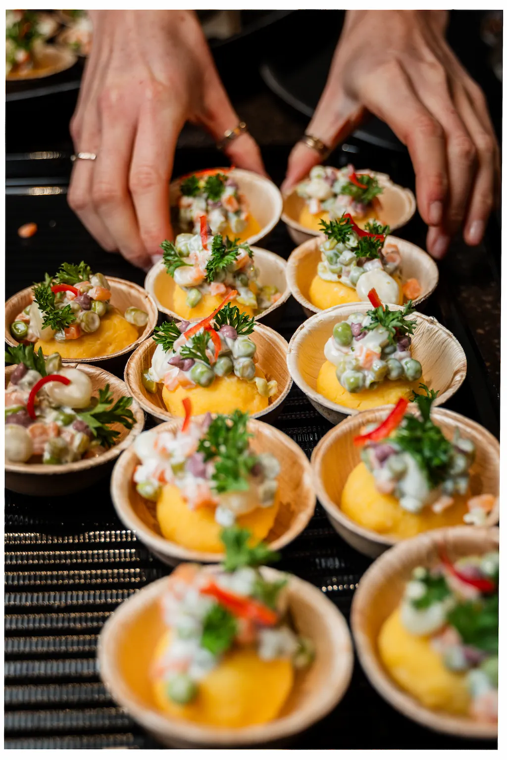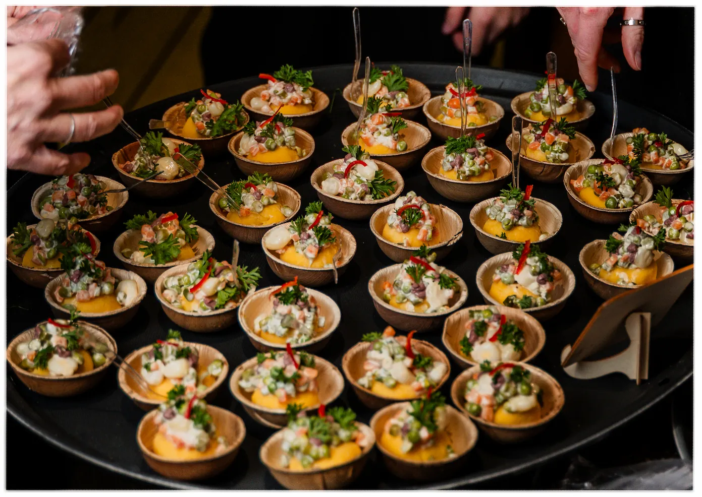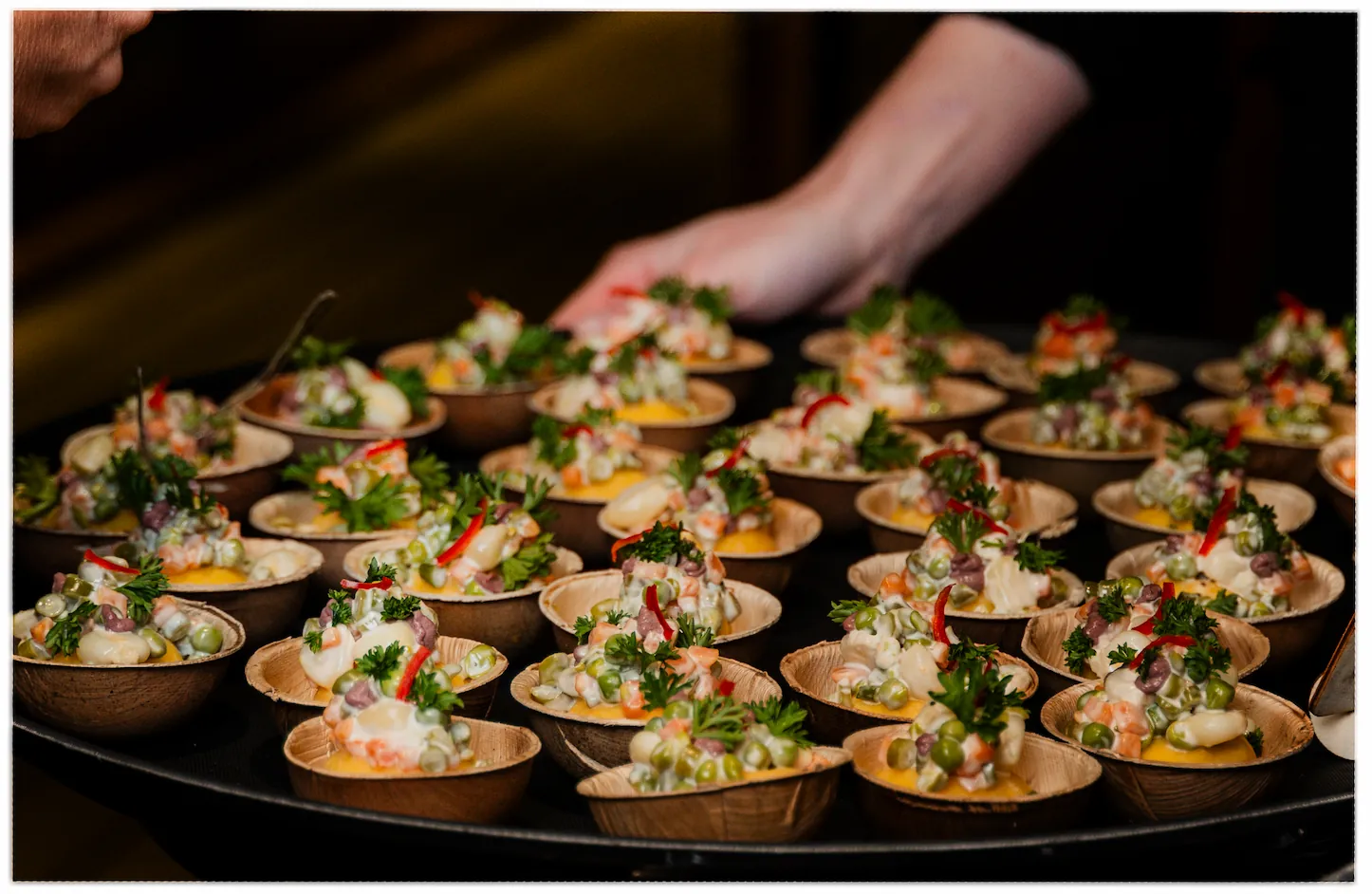 We craft irresistible, bite-sized masterpieces that transform every moment into pure satisfaction. Each canapé is a complete dish in one mouthful—designed to delight and surprise your guests.